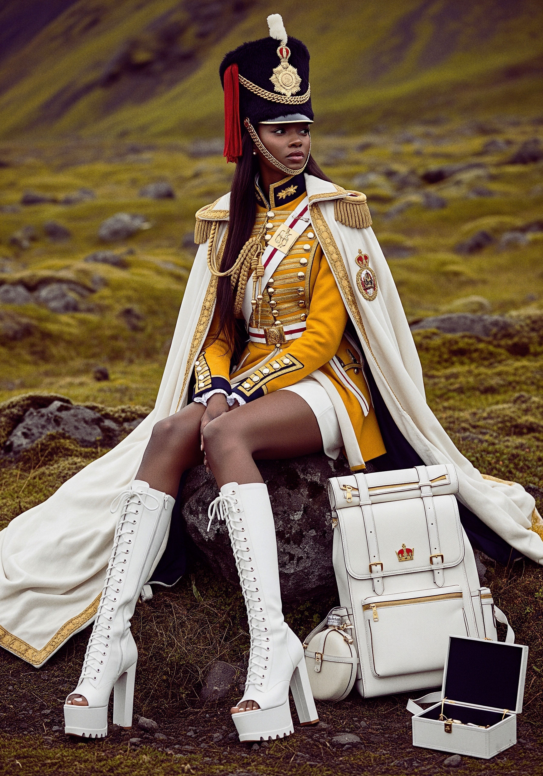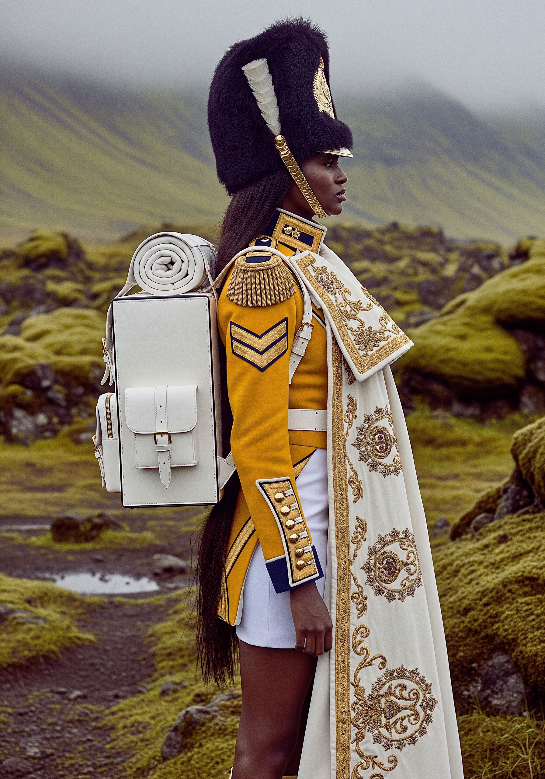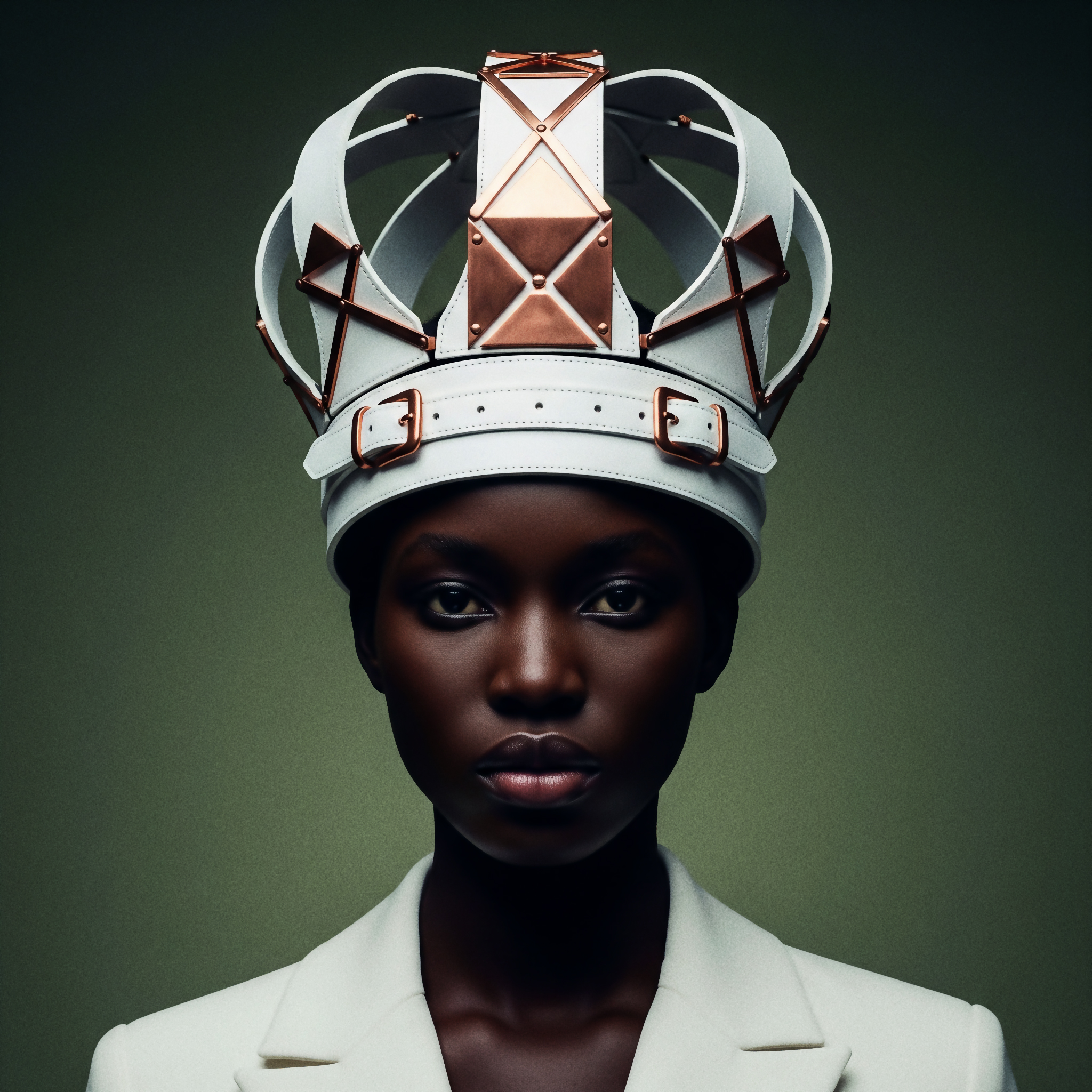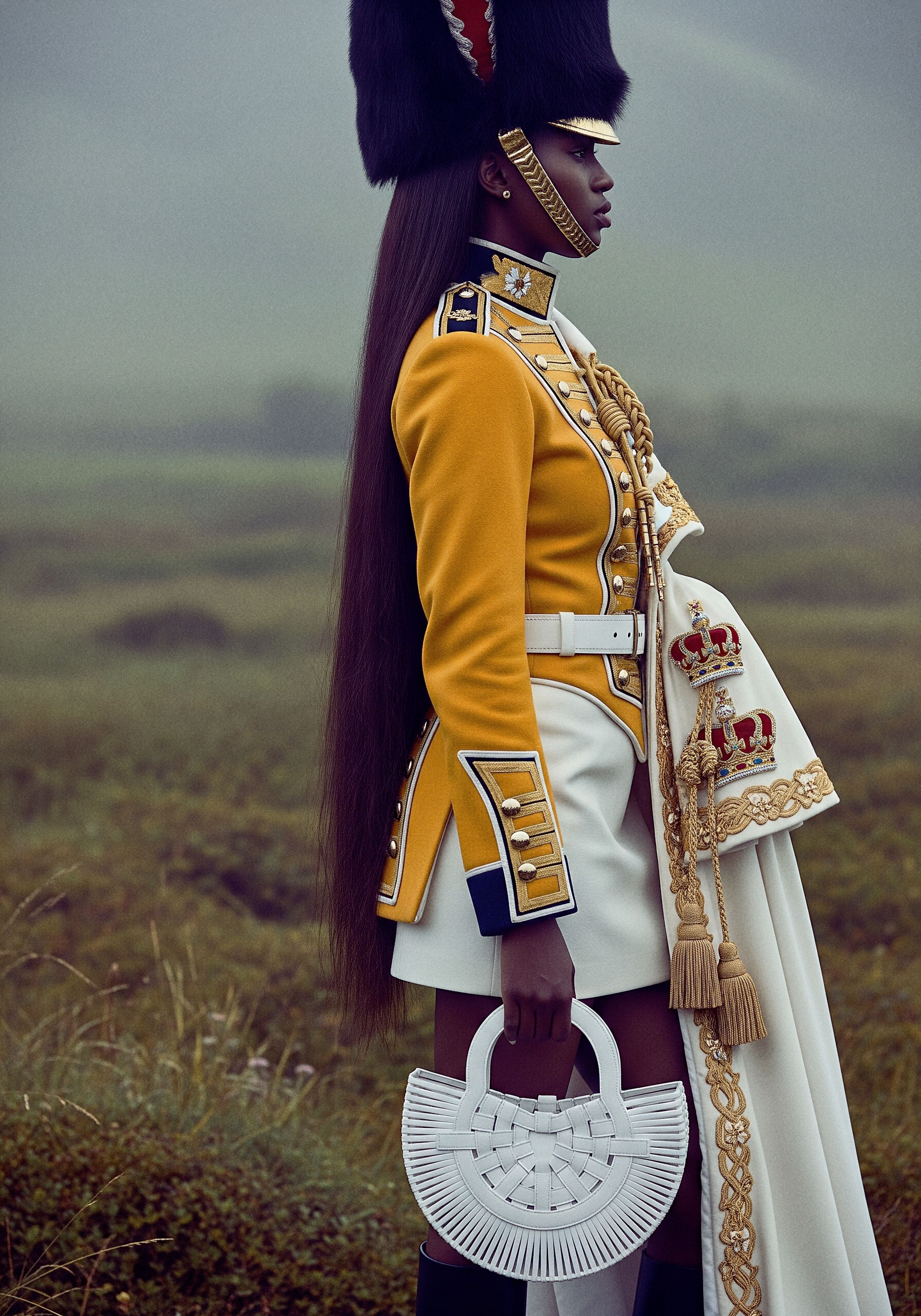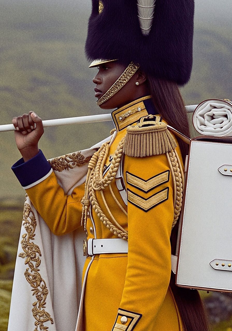 Here, the uniform becomes silhouette. Authority becomes self-defined. The gesture is not submission to inherited codes, but their transformation.