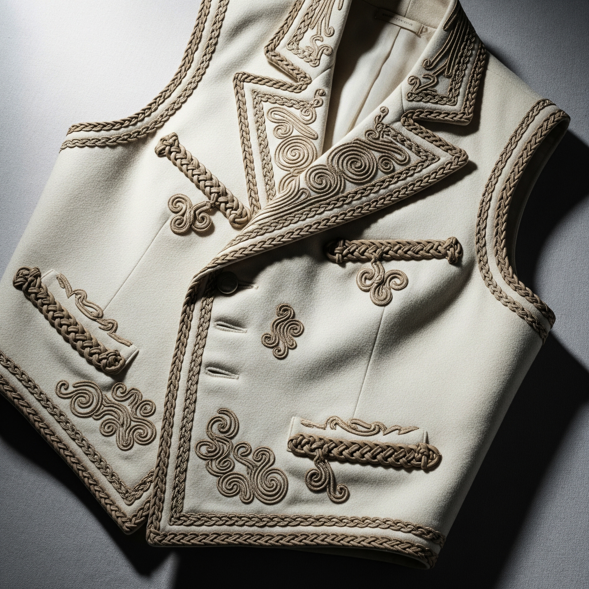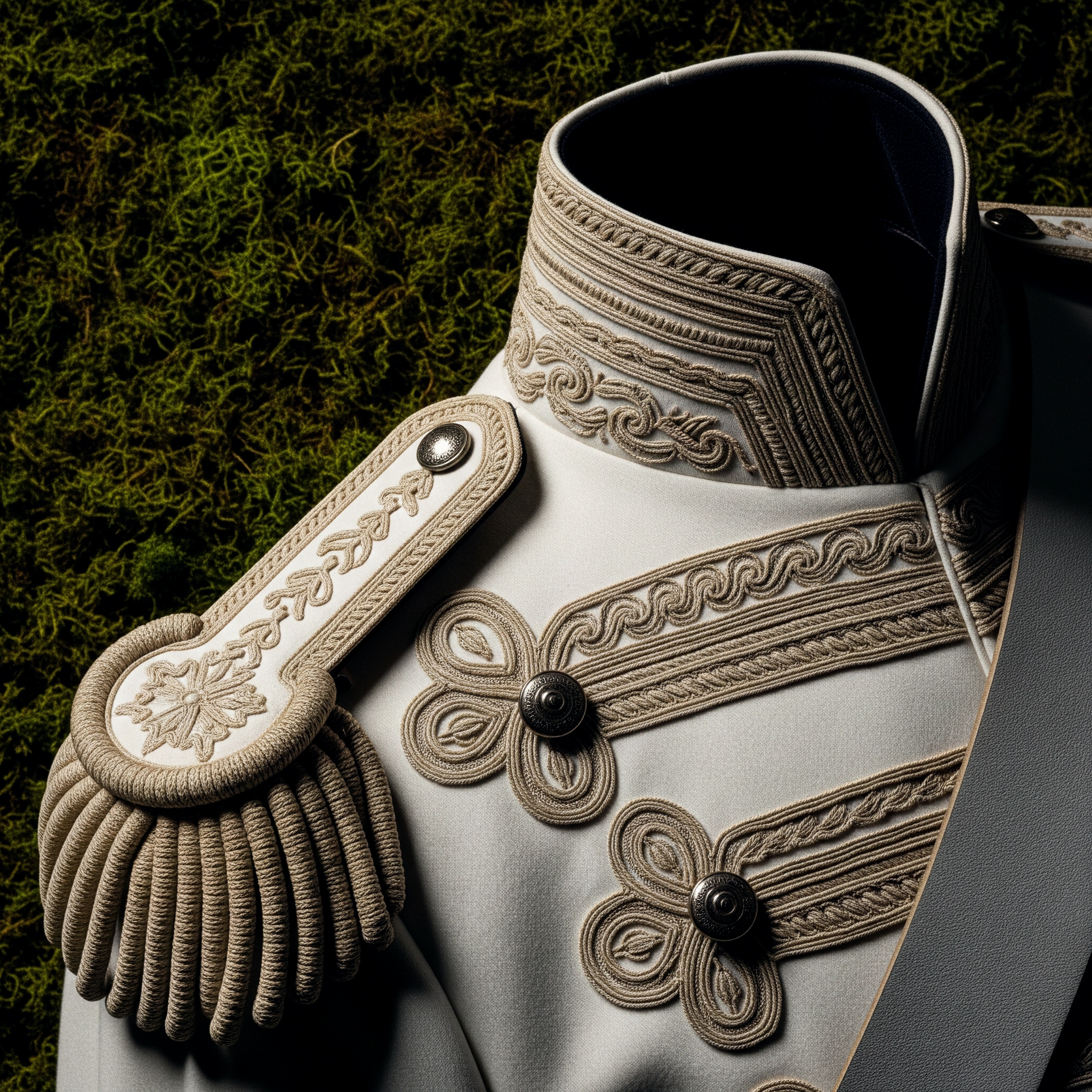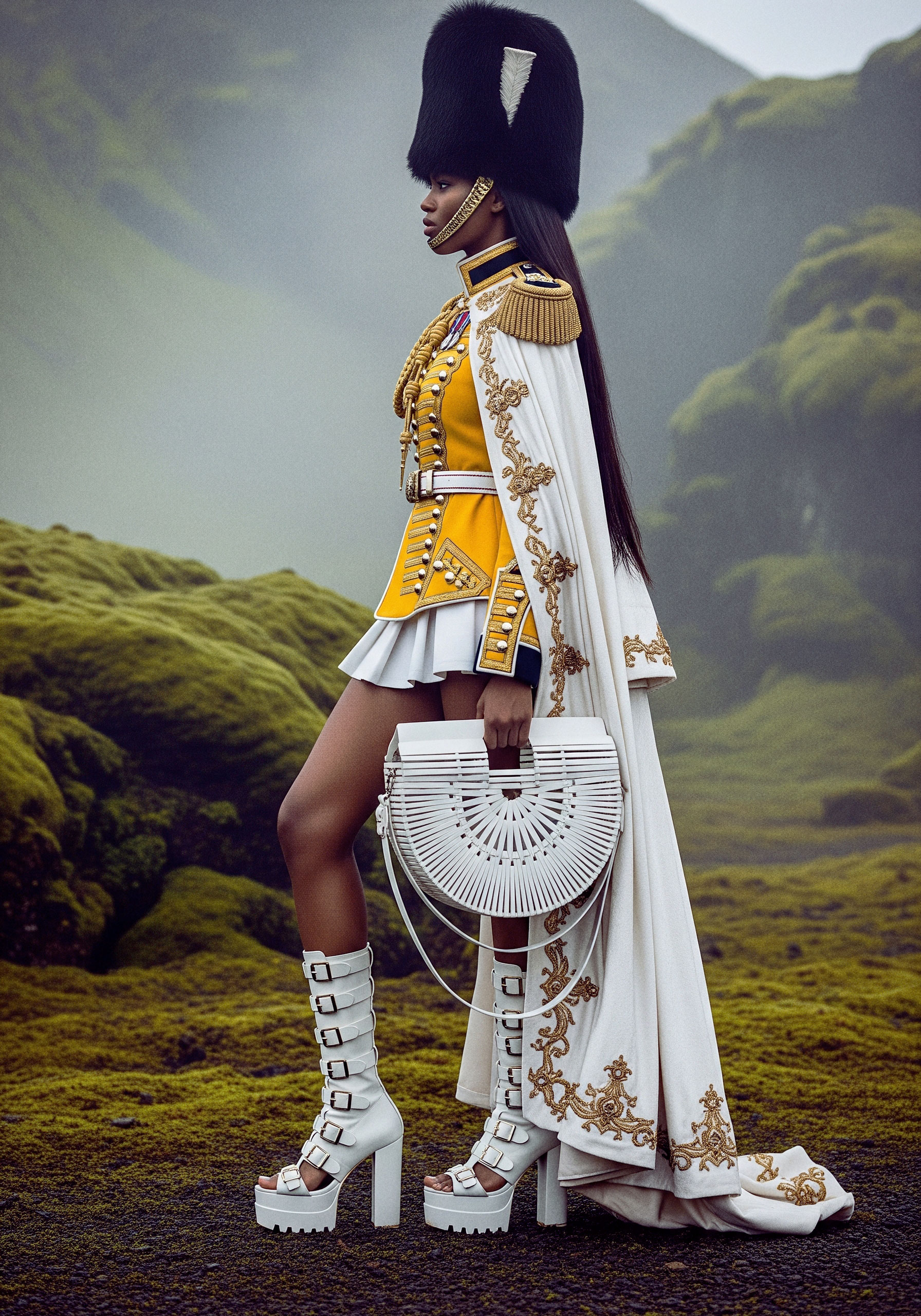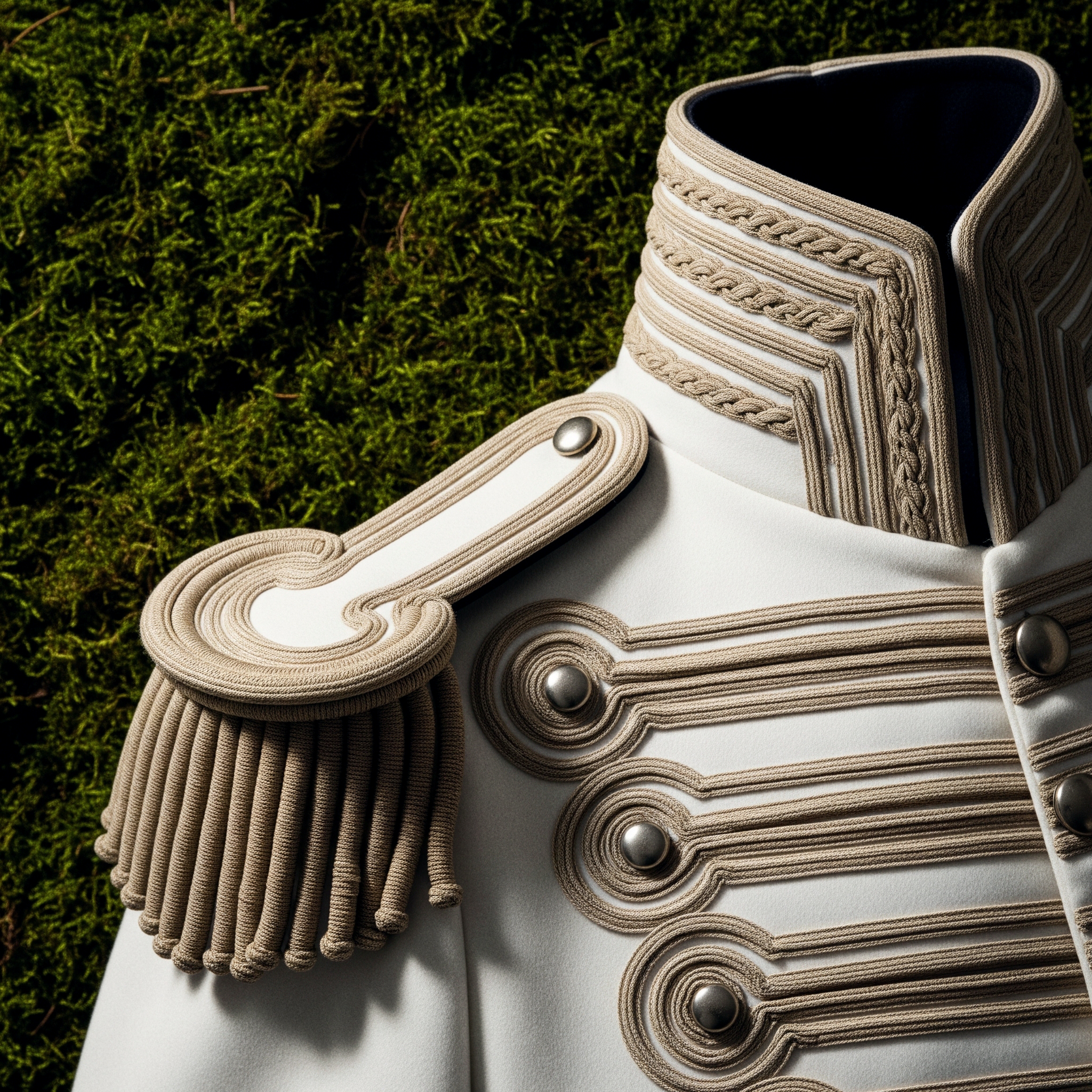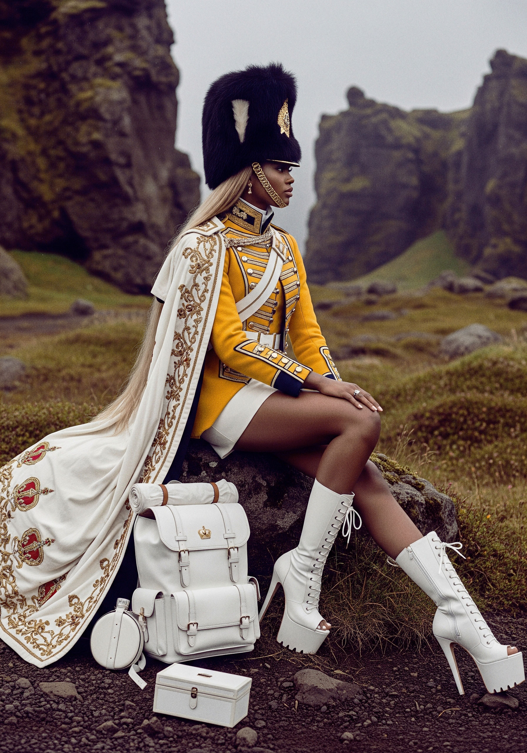 Here, the uniform becomes silhouette. Authority becomes self-defined. The gesture is not submission to inherited codes, but their transformation.