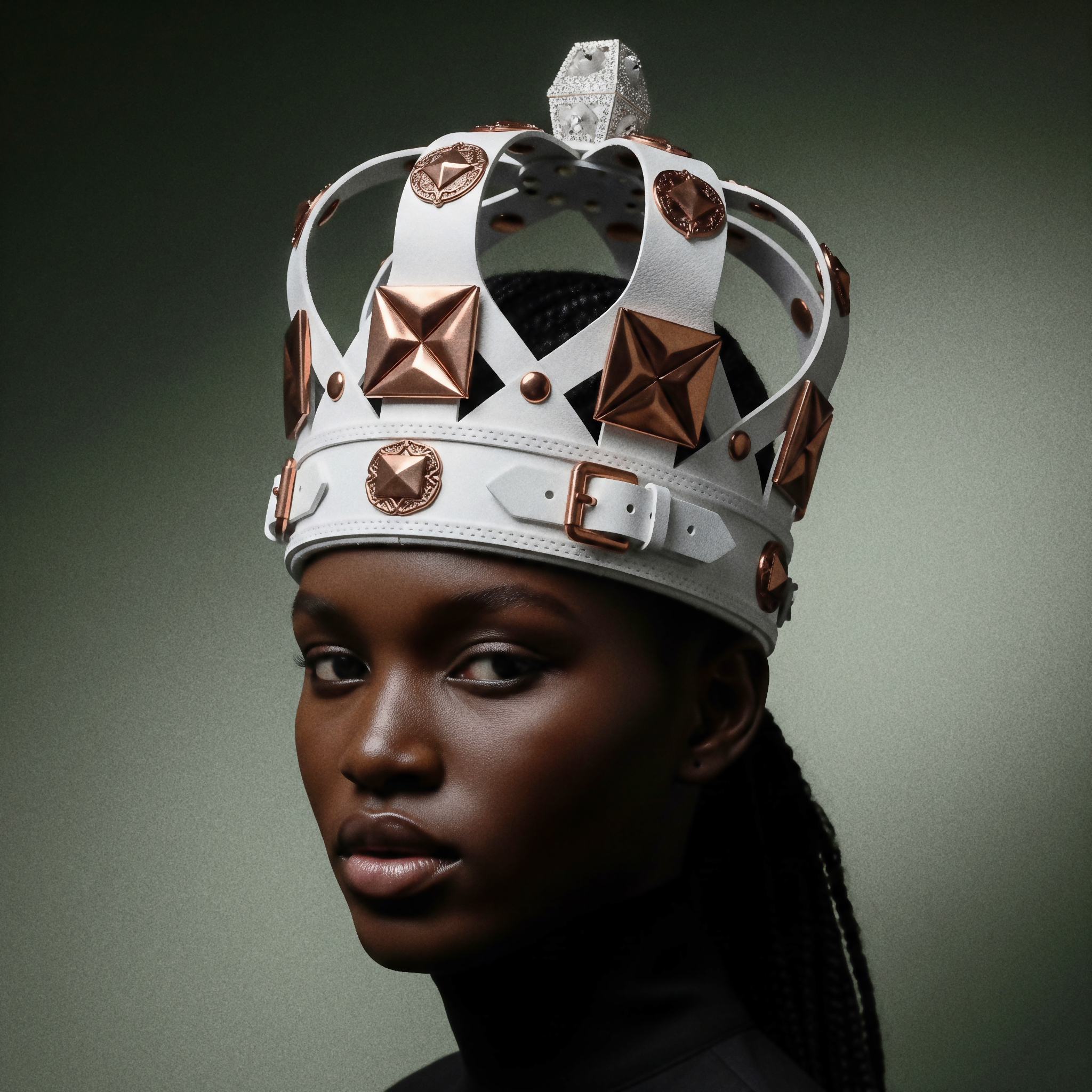 In this context, a woman of African origin stands within the codes of a former order and alters them from within. She does not replicate history. She repositions it.